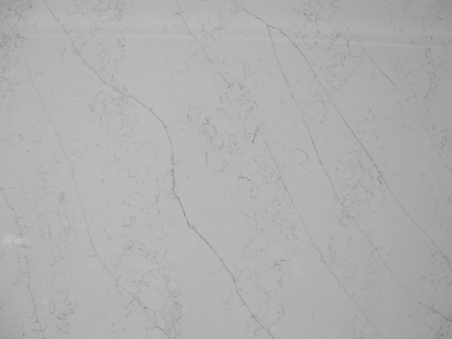 Gelandy quartz Calacatta new color GLD415 features a white base with veins that blend yellow and gray tones. The overall pattern consists of slender veins, where fine lines intersect with fragmented patterns, creating a surface where every inch is adorned with veins, while still allowing for adequate white space.