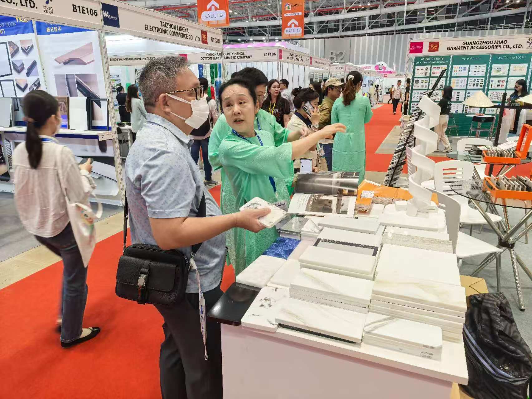 Today marks the first day of the exhibition, and our booth quickly became one of the busiest and most visited, drawing the attention of builders, building material traders, and furniture manufacturers who came to experience our products and explore potential cooperation.