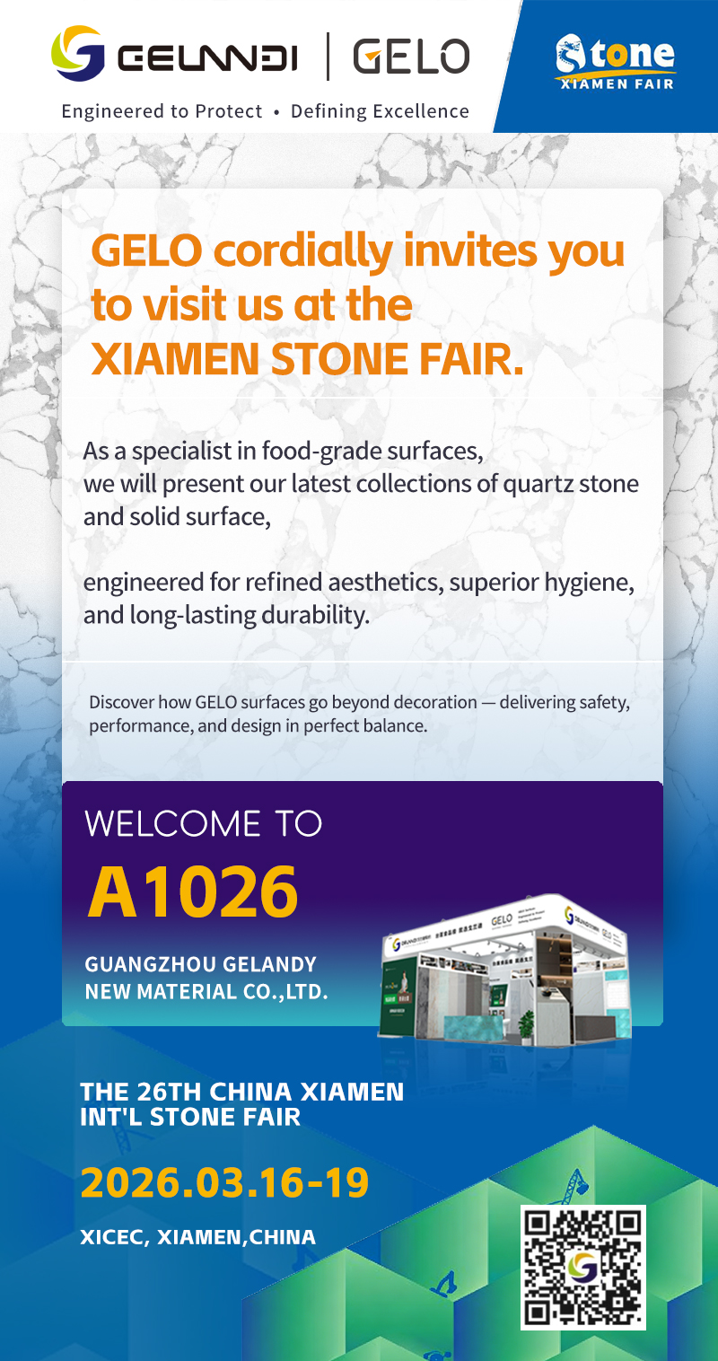 As a professional manufacturer specializing in food-grade quartz and solid surface countertops, Gelandy will present a new collection of high-performance, hygienic, and design-forward surface solutions tailored for global markets.