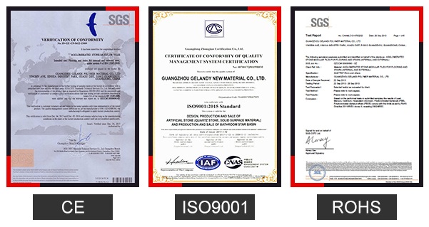 Established in 2000, Gelandi is a Joint-Venture Corporation and now listed Ltd., Co.,. Over 18 years, our visionary management team has built up and enviable reputation for creating truly satisfying and stylish home, modern office and commercial environments at extremely cost-effective rateds. Employing some 400 skilled workers, our 65620 sq. m. state-of –the-art production center in Guangzhou, China, can now produce around 500,000 solid surface and quartz slabs, countertop,sinks&basins. And decorative panels annually.