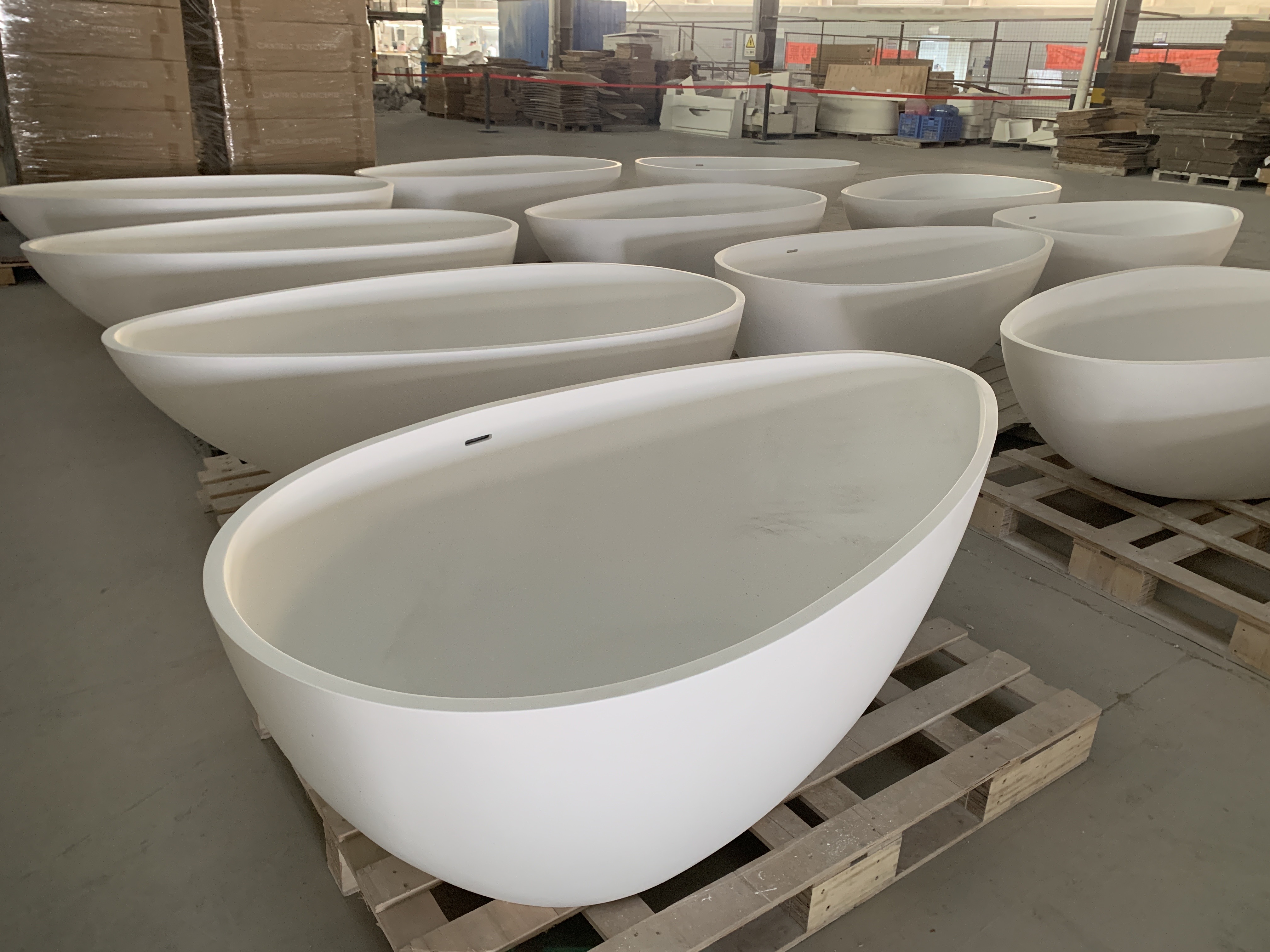 2.Easy to clean and renewable: The non-porous surface of solid surface freestanding bathtubs makes them very easy to clean. You don't have to worry about mildew or mold buildup as you might with other types of bathtubs.And It's the same from inside to outside,you can renew it by