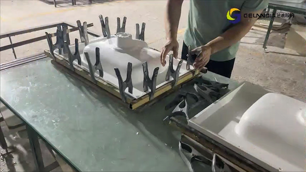 The demolded basin enter the vacuum baking oven for baking and shaping.