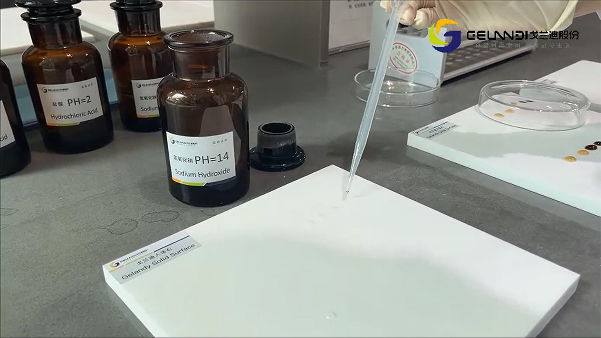 Firstly, Gelandy Solid Surface has excellent stain resistance. Whether it is in a household kitchen or a commercial space, we often encounter various stains. However,Gelandy Solid Surface is stain-resistant solid surface, effectively resisting the penetration of liquids such as oil ,coffee,red wine,and milk,making it easy to maintain cleanliness.This feature not only ensures a consistently pristine appearance but also simplifies maintenance, making Gelandy an ideal choice for spaces where hygiene and cleanliness are paramount.