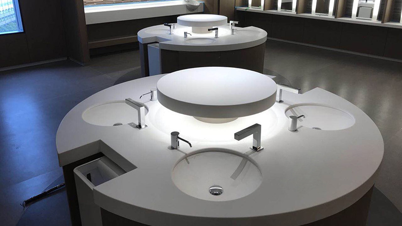 La superficie sólida 100% acrílica utilizada en encimeras de tocador de laboratorio.👉