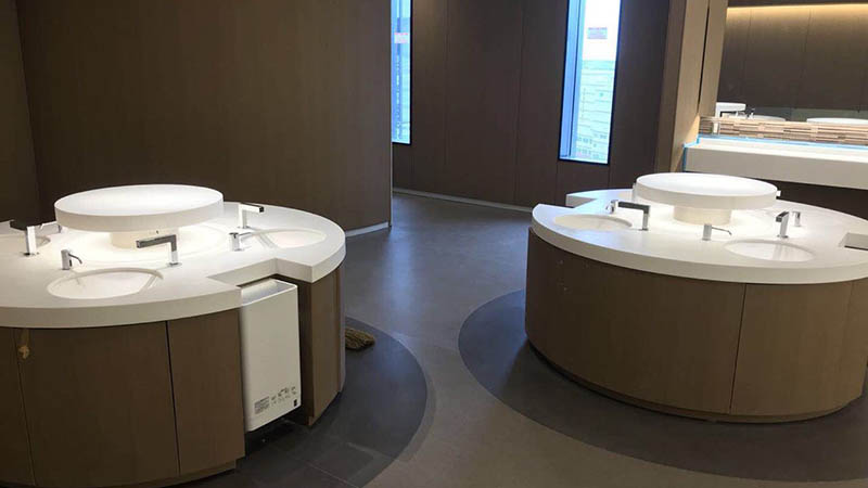 El laboratorio de la Universidad de Kyushu en Japón, que tiene altos requisitos en cuanto a densidad de superficie, resistencia a la corrosión, resistencia al moho y a las bacterias de los materiales, eligió la superficie sólida 100 % acrílica Gelandy GMA13. Tiene excelentes propiedades mecánicas y resistencia a la intemperie, a las manchas y al agua. Además, las superficies superiores y los lavabos no tienen juntas, por lo que no hay lugar para la suciedad y es más fácil de limpiar.