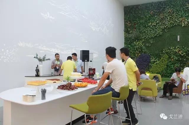 El primer grupo de visitantes que visitó el "área del futuro" de Golandi, modelando la clase ejecutiva frontal, fue simple, el estilo único del mostrador de recepción, bar, pared de modelado tridimensional, pilares de modelado y piso de piedra de cuarzo componen el espacio general para atraer.