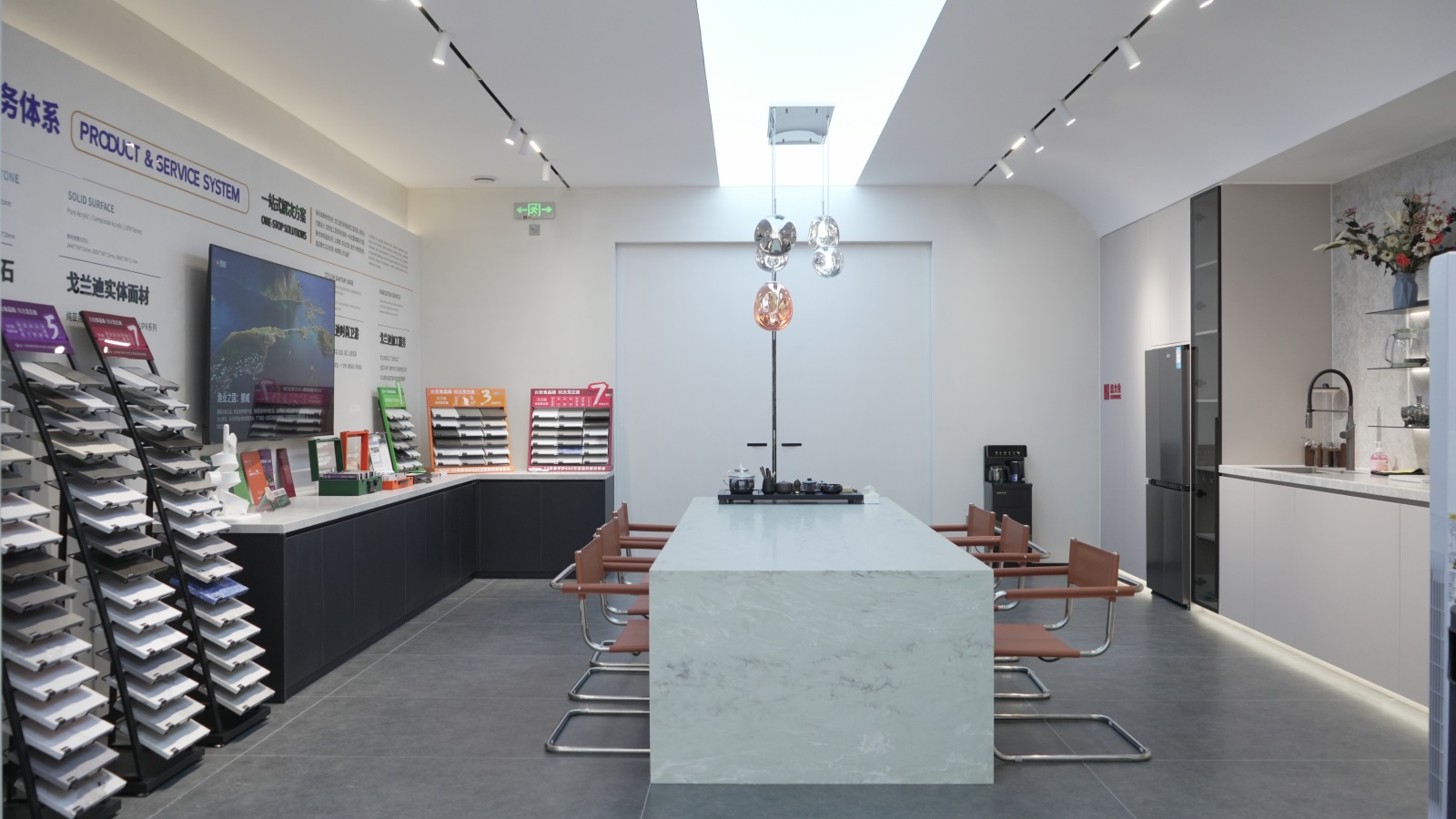 The new showroom fully showcases Gelandy’s 25 years of technological expertise and innovative achievements. From the brand history wall to the patented technology area, from realistic sample rooms to interactive smart displays, raw material exhibitions, and bathroom sections, every space has been meticulously designed to allow visitors to experience the exceptional quality of food-grade countertops in an immersive way.