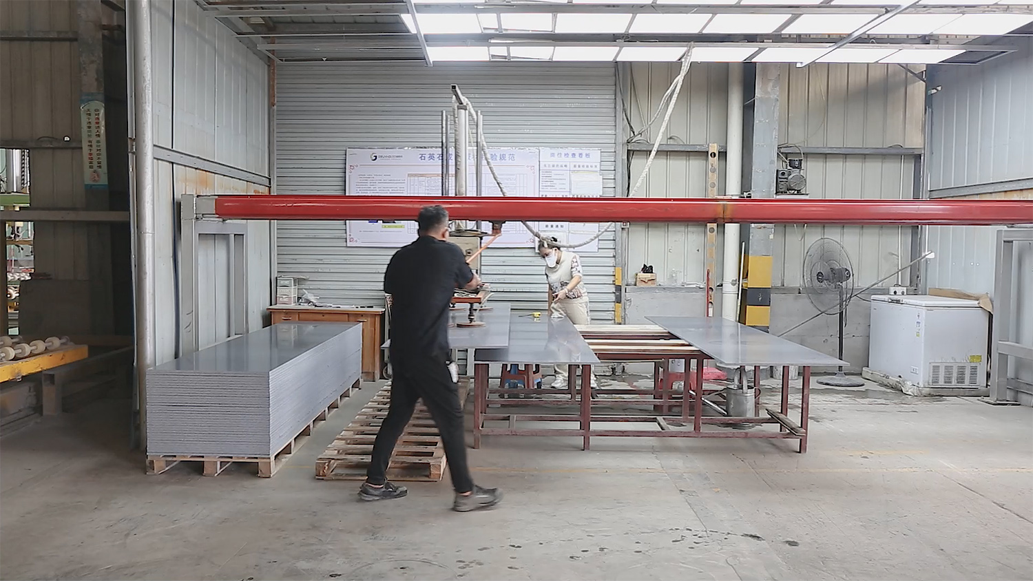 Kami mempunyai bengkel pengeluaran papak batu Kuarza, Bengkel kepingan permukaan pepejal, Bengkel pengeluaran bilik mandi, Bengkel fabrikasi untuk memastikan kapasiti pengeluaran.