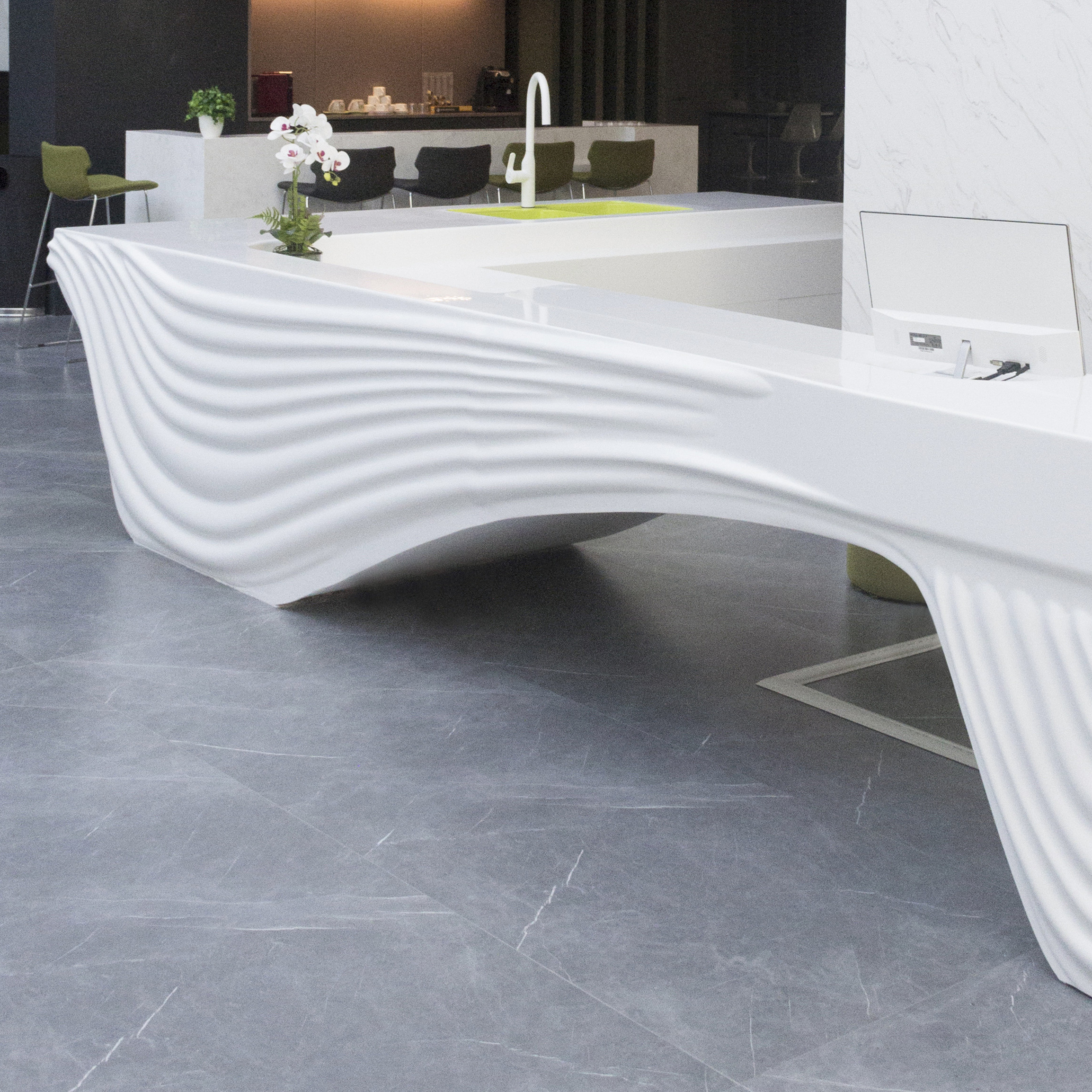 Na may higit na kahusayan sa pag-fold at paglaban sa mga stress fracture, ang Gelandy acrylic solid surface ay nagpapanatili ng integridad ng istruktura nito kahit na sa ilalim ng matalim na baluktot. Ang mga katangian nito na hindi buhaghag, lumalaban sa mantsa, at madaling mapanatili ay ginagawa itong mas gustong pagpipilian para sa iba't ibang aplikasyon, kabilang ang: