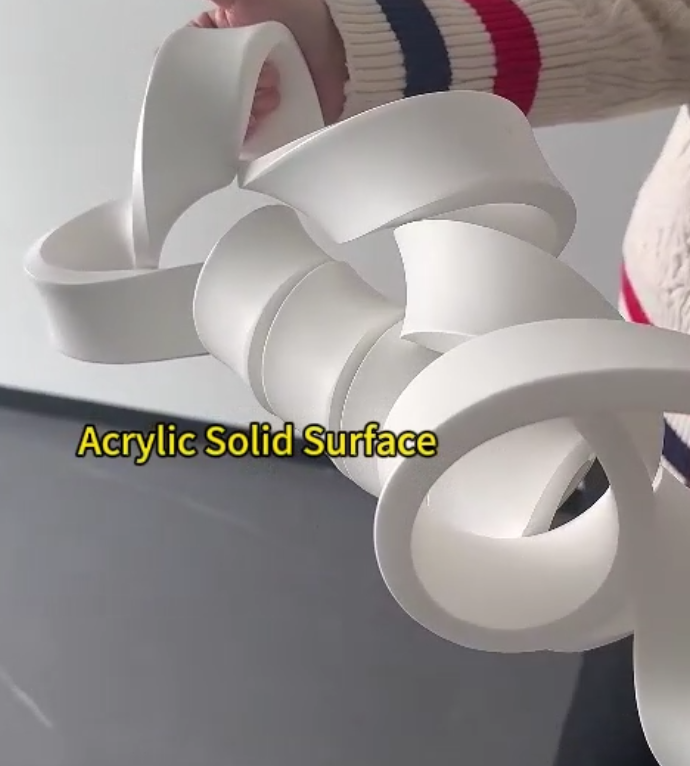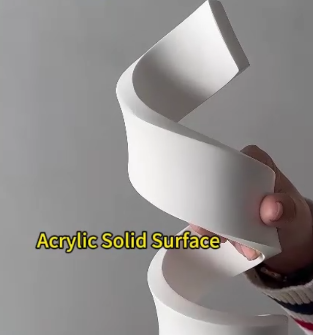Ang Gelandy acrylic solid surface ay isang high-performance, foldable at thermoformable na materyal, na nag-aalok ng pambihirang tibay, flexibility, at walang tahi na mga posibilidad sa disenyo. Ininhinyero para sa versatility, ang materyal na ito ay maaaring maging init-bent at nakatiklop nang walang crack, na ginagawang perpekto para sa masalimuot na mga disenyo at curved application.