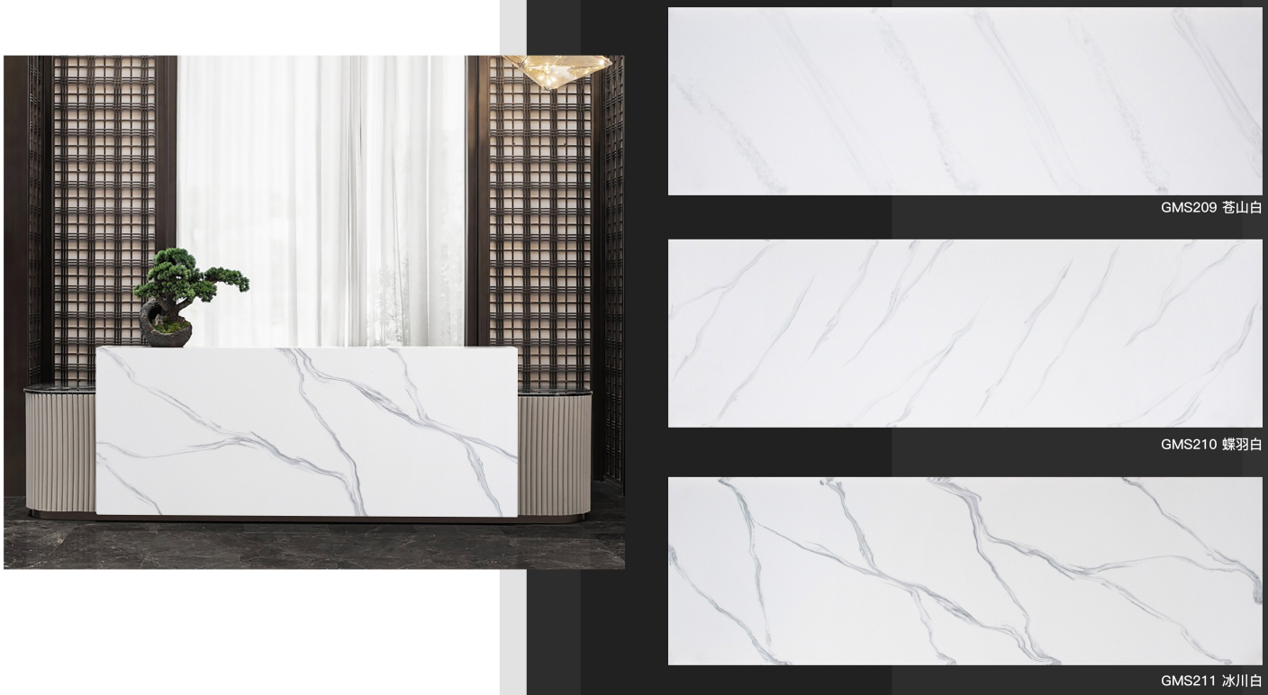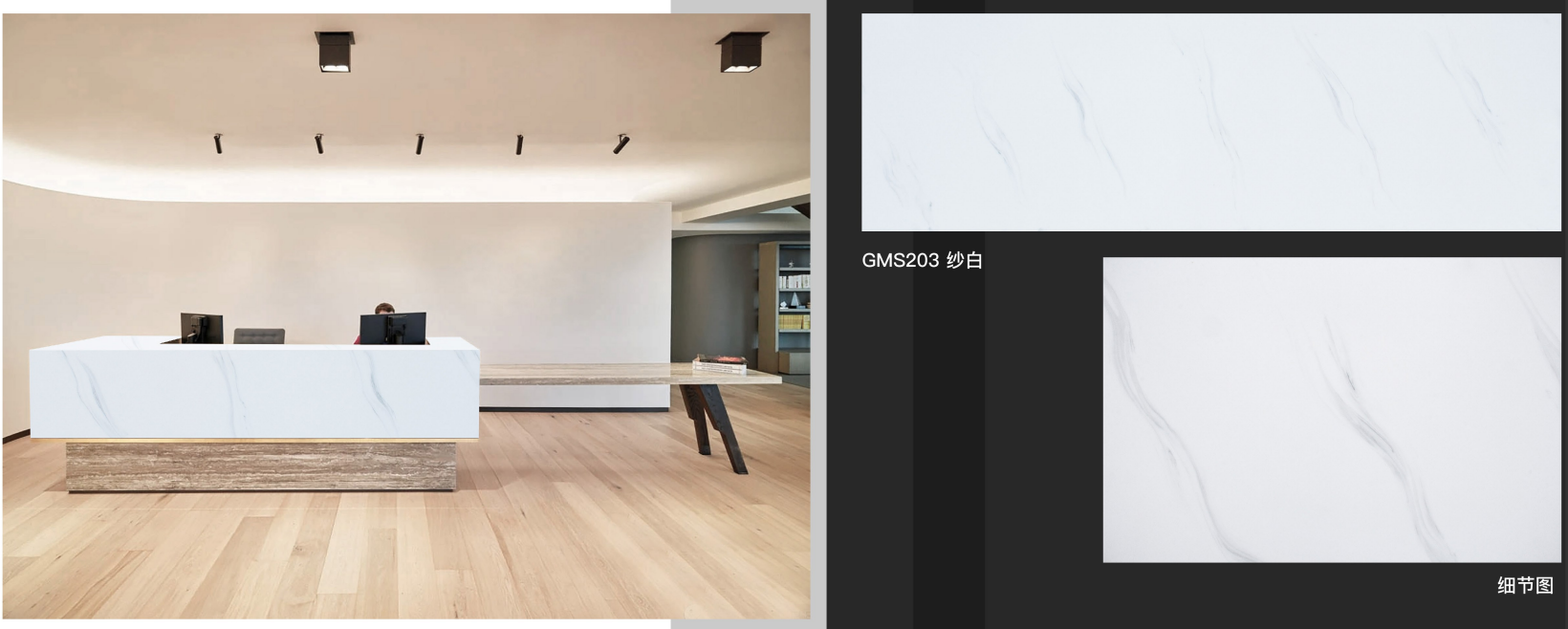 Buong texture ng katawan, nababaluktot na hugis, natural at makatotohanang texture, lumilikha ng higit pang mga posibilidad, nag-aalok ang mga ito ng marangyang hitsura at pakiramdam na maaaring mapahusay ang pangkalahatang aesthetic ng iyong espasyo..Ito ay may mahusay na mekanikal na mga katangian at paglaban sa panahon, Ito ay malawakang magamit para sa kakaiba reception desk, medical table, decorative wall, column, commodity display desk, atbp. Ito ang gustong materyal para sa high-end. mga countertop at espesyal na bumubuo ng dekorasyon.