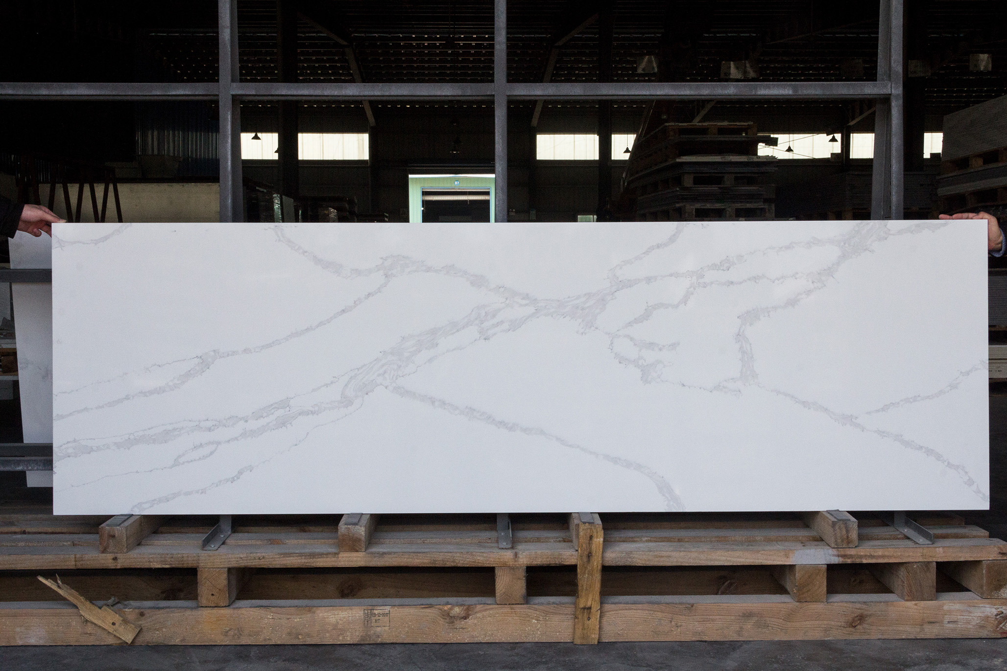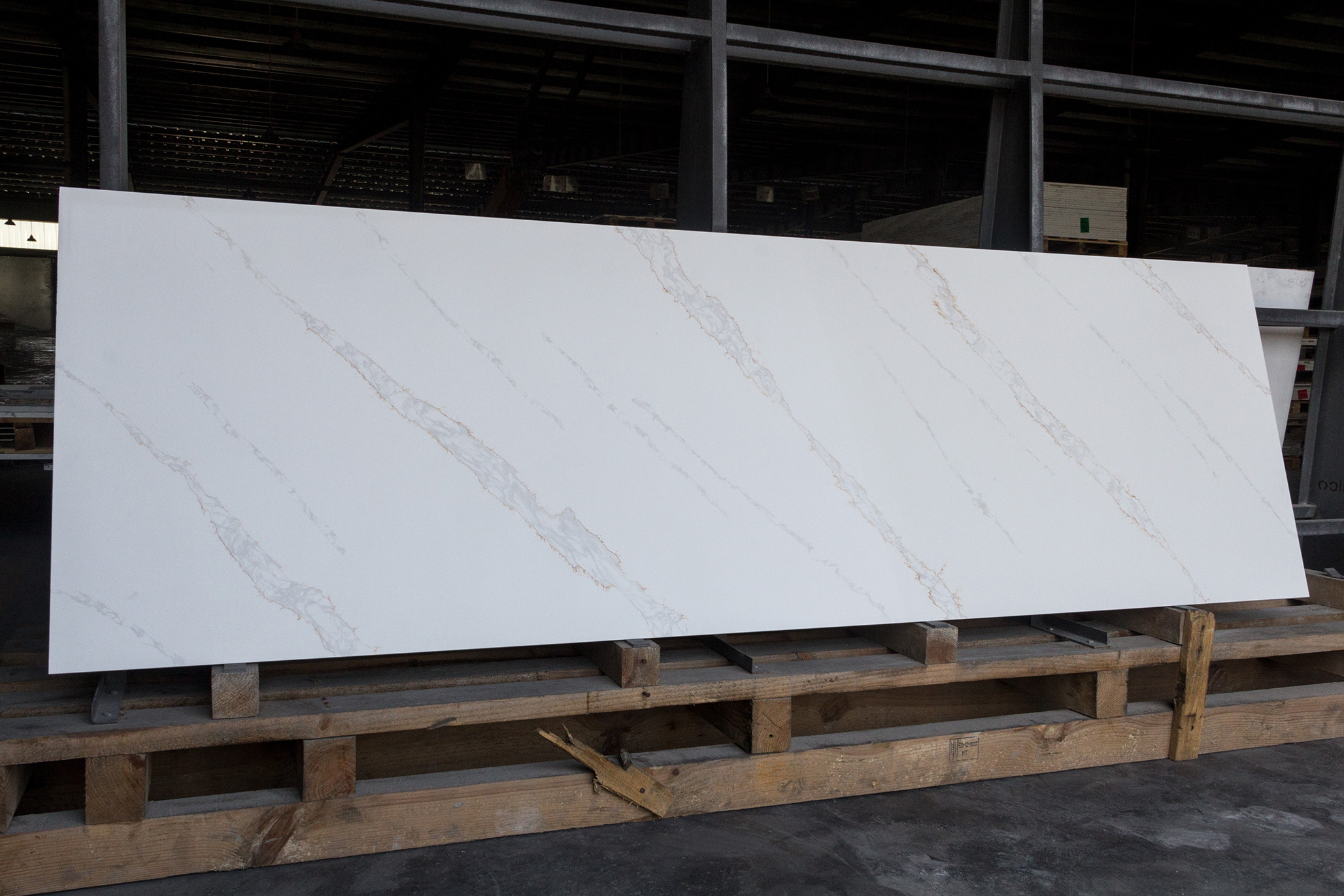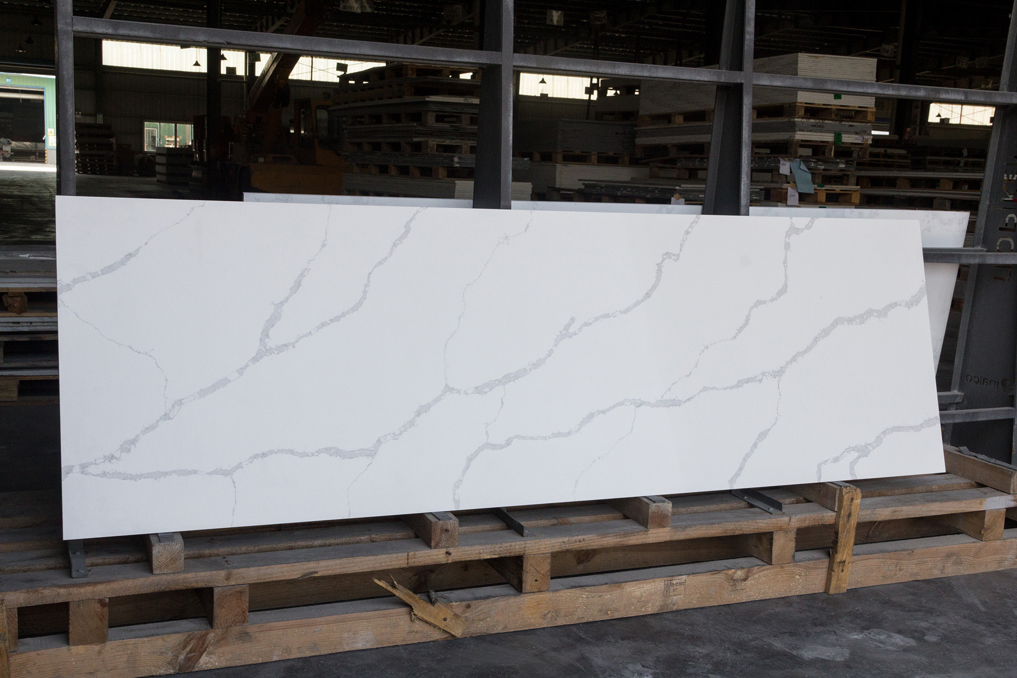 Ang Quartz Calacatta ay lubos na matibay at lumalaban sa mga gasgas, mantsa, at init. Ang komposisyon nito, na kinabibilangan ng humigit-kumulang 90% na mga quartz at resin binder, ay ginagawa itong isang matibay na ibabaw na makatiis sa pang-araw-araw na paggamit sa mga kusina at banyo.