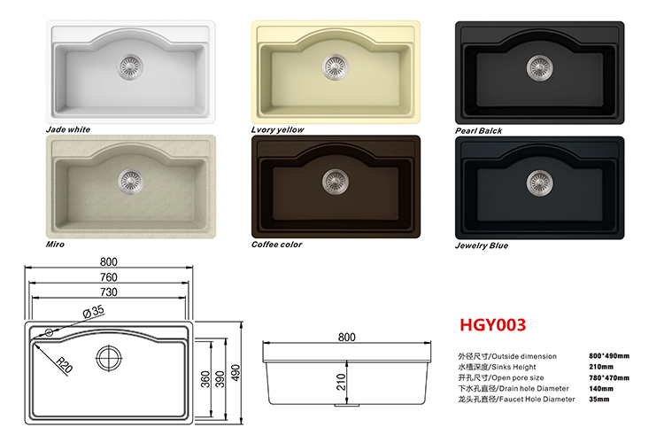 | Pangalan ng Produkto | Top mount kitchen grainte sink |